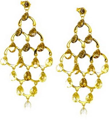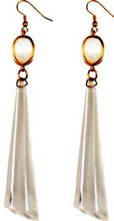 经过菱形切面处理的水珠玻璃坠,搭配金属棱型掉坠,与任何类型的晚装都很搭。价格: $140
