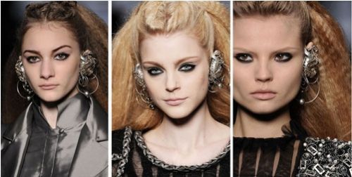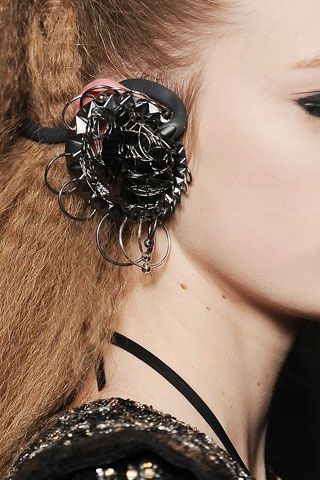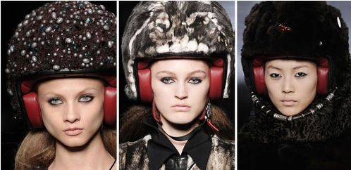 在Karl Lagerfeld的秀场上出现了这个超酷的东西。带上它既可以保暖又可以不用带耳环起装饰的效果.还能连接I-POD听音乐。真是功能齐全。除此之外还出现了皮草的头盔。差不多的功能比起来实用性就不如前者了。虽然现在还不知道会不会掀起一股热潮。但在大冬天戴着它们出门肯定会很拉风。