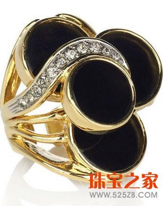RobertoCavalli设计师独特的设计方式可谓令人感叹,新一款的2009春夏金色水晶黑宝石戒指令人叹为观止,金色的圆环中添加了高贵的黑宝石,为了避免过于单调,设计师巧妙地在戒指中添加了一列闪亮的水晶装饰,让整款戒指突显出其特有的韵味。