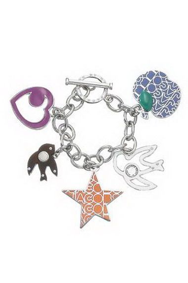 Marc by Marc Jacobs永远都带着小女孩的梦幻情愫和可爱形态。飞翔的小鸟、爱心,写满logo的苹果和五角星,数个贴着“可爱”标签的大金属吊坠,串联在手链上清脆作响,散发出青春无邪的气息。