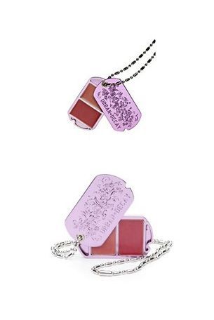 酷酷的士兵识别牌造型项链(战时挂在士兵脖子上的身份识别牌),打开是两款不同色泽的URBAN DECAY XXX闪亮唇彩,一款粉红一款深红色泽,可以单独也可以搭配使用。如果不打开,没人知道它竟然是一款唇膏!