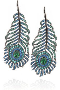Kenneth Jay Lane孔雀羽毛式镶宝石耳环