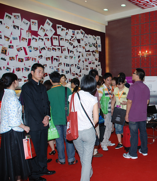 真情告白墙吸引了众多参观者的目光,不少人特意到此拍照留影,并对其表示惊叹和赞赏,真情告白墙的轰动效应还直接带动了现场的零售和批发业务。同时,不少来自全国各地的珠宝商对嘉华展会期间提供的“免费店务输出”服务表现了极大的兴趣,纷纷前来咨询报名,希望自己的店有幸得到嘉华店务精英亲临指导。场外,嘉华的“婚爱使者”们分别穿着清朝、民国、现代的服装在展馆里传播嘉华的婚爱文化,别有一番情趣。