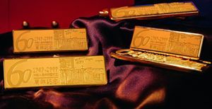 七彩云南新推出的这些黄金产品中,有作为装饰佩戴之用的黄金项链、戒指、耳钉等饰品,琳琅满目,工艺细腻,金光灿灿,光彩夺目;亦有作为收藏投资之用的黄金投资金条,规格齐全,图案精美,周正大方,沉稳厚重,既能投资以保值增值,又能馈赠以传情达意。这些投资金条中,尤以国庆献礼“中华人民共和国成立60周年纪念金条”最受追捧,赢得各方青睐。